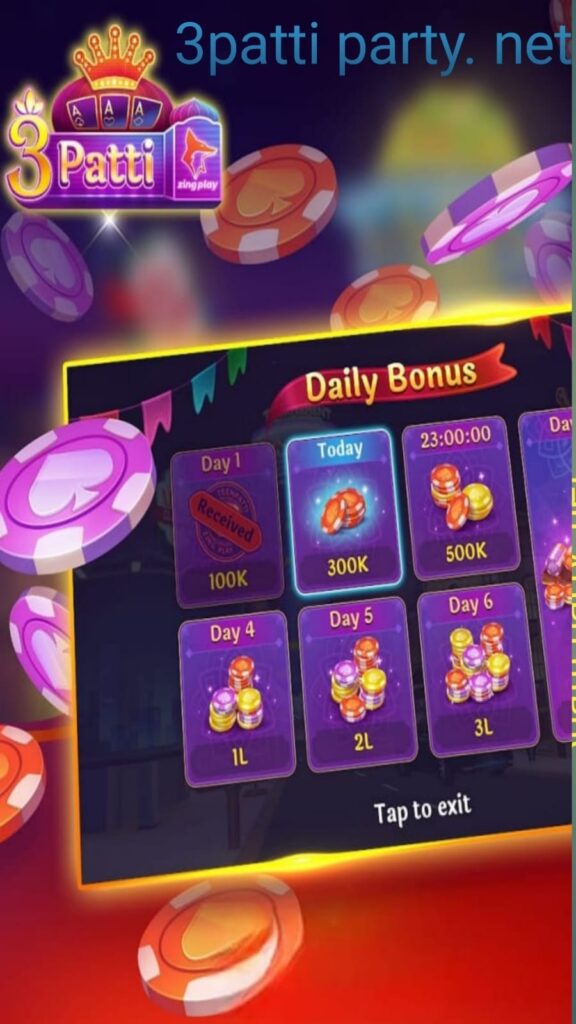 The Teen Patti Party Game provides multiple ways to earn cash daily: